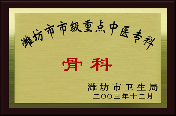 骨伤科(西区)成立于1993年,是全省“十三五”中医药重点专科建设单位、潍坊市重点中医专科,山东省中医药大学、山东中医药高等专科学校、万杰医学院教学基地。