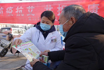 12月1日是第33个“世界艾滋病日”,今年我国的宣传主题是“携手防疫抗艾,共担健康责任”,为进一步宣传普及新冠肺炎和艾滋病防控知识,11月30日上午,我院组织医务人员积极参加诸城市卫健局在沧湾公园组织开展的“世界艾滋病日”义诊宣传活动。